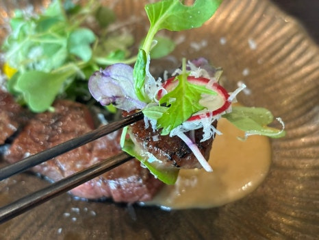 마지막 메인으로 일본식 달콤란 소스에 재운 업진살 구이가 나왔다.