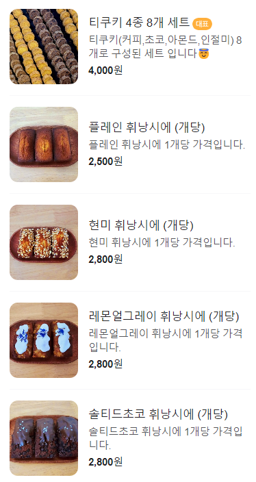 네이버 플레이스에서 캡쳐해온 쿠키와동동 쿠키 라인업.