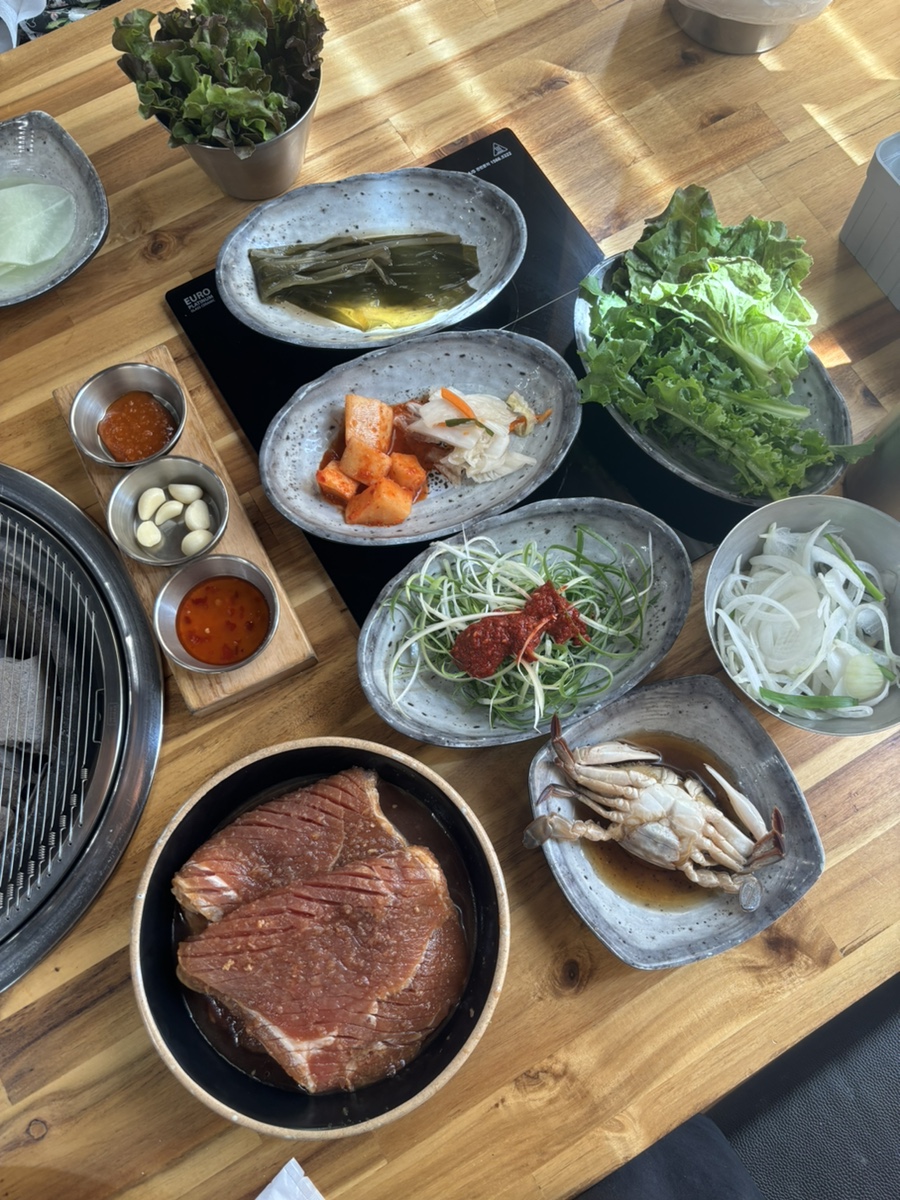 갈비를 먹을 때 필요한 밑반찬들과 ⭐간장게장⭐이 있었고
